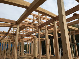 構造体 反った丸太材は、通常の直材に比べ上からの荷重に対する抵抗力が大きくなります。加工が難しく今ではほとんど扱える技術者がいなくなりましたが、優れた大工がうまく扱えば、まっすぐな材よりも大きな強度を持たせることができます。そして、実はまっすぐに製材された木材よりも価格が安かったりします。。。