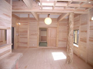 居間 床は板厚36mmの無垢ヒノキ板!!